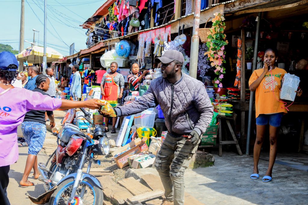 Her words: “We are celebrating the good works of our Governor and that is why we are giving food items as a sign of support to a working governor.”We are here to appreciate his good works, using our one year anniversary to spearhead that. That’s why we are distributing food items to the people .