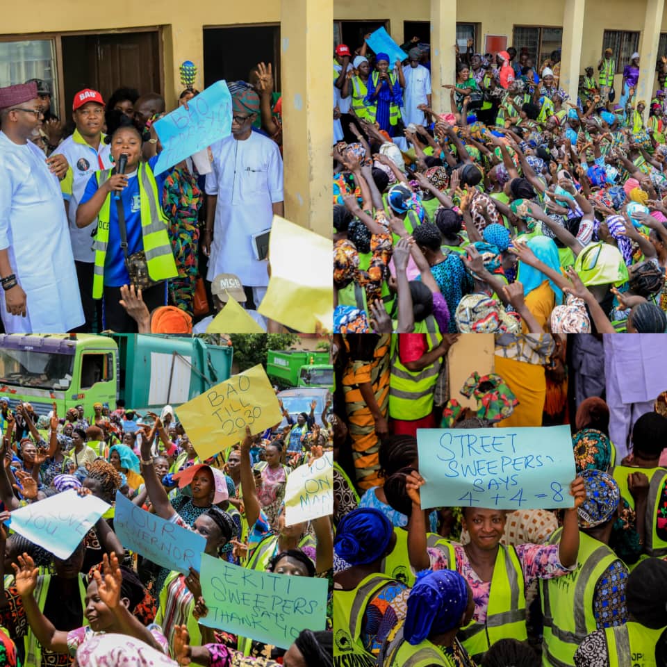 Thousands of Street Sweepers’ in Ekiti State on Tuesday endorsed the state governor, Biodun Oyebanji for second term in office.
